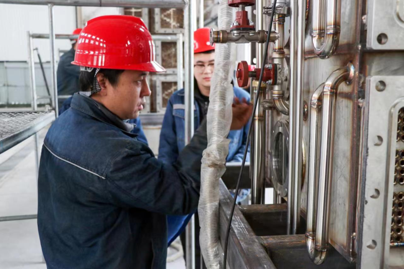富龍供熱技術公司總經(jīng)理方豪在車間試驗新技術
