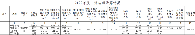 赤峰市城建集團2022年度工資總額清算結(jié)果